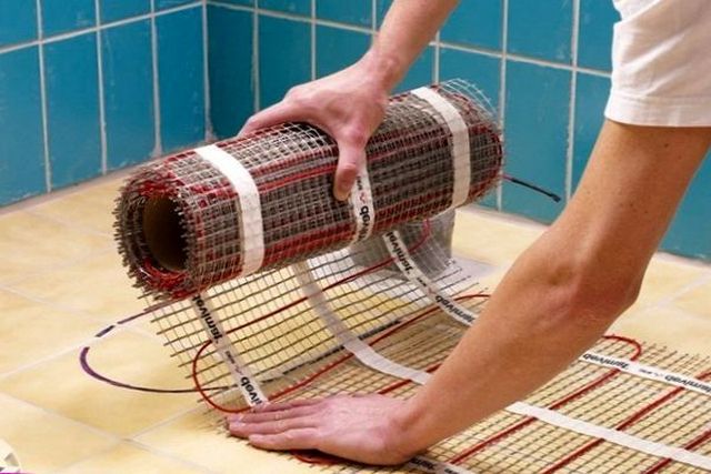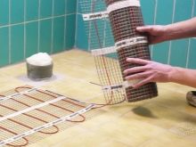 Um den Boden unter der Fliese anzuordnen, ist es natürlich besser, ein Heizkabel zu wählen. Die hier verwendeten Drähte haben einen geringen Durchmesser, so dass eine Estrichvorrichtung nicht notwendig ist. Die Matte kann direkt unter dem Fliesenkleber platziert werden, dessen Dicke 8-10 mm erreicht.