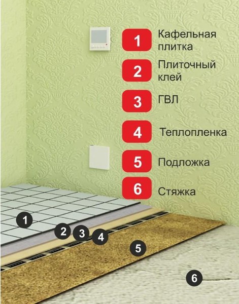 Zusätzliches Substrat beim Einbau unter die Fliese erfordert keinen Folienboden mit Carbonstäben. Er gilt als der vollkommenste.
