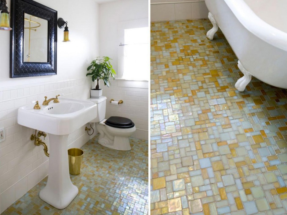 Für Bäder, die sich in kleinen Größen unterscheiden, passen zu große Fliesen nicht - die Proportionen des Raumes werden verletzt. Vorzug sollte eine kleinere Fliese oder ein Mosaik gegeben werden.