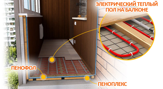 Wenn man sich für die eine oder andere Variante des warmen Fußbodens entscheidet, muss man entscheiden, ob der warme Fußboden die einzige Quelle der Heizung sein wird oder andere ergänzen wird. Im ersten Fall wird die Berechnung der Leistung auf Wärmeverluste durchgeführt. Die durchschnittliche Oberflächenleistung beträgt 140-150 W pro 1 km². m. Wenn der warme Boden eine zusätzliche Wärmequelle ist, dann reicht die Leistung 80-100 Watt. Beispielsweise sollten für unbeheizte Räume, beispielsweise auf einem Balkon, Heizmatten bevorzugt werden, die eine Betriebstemperatur von bis zu 90 ° C ergeben können. Natürlich sollten Sie auch auf die Dämmung der Loggia achten, da sonst der Wärmeverlust enorm ist.
