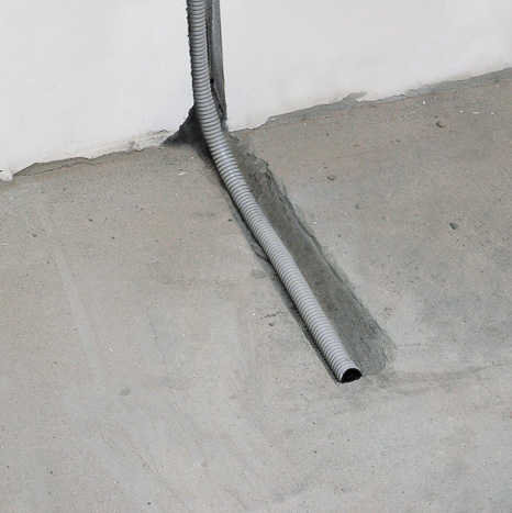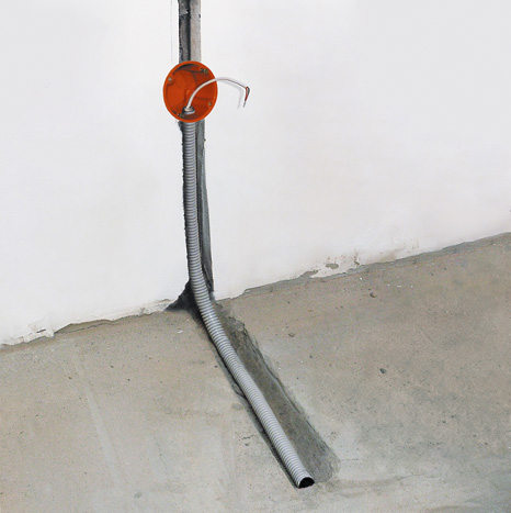 Weiter in der Wand vom Thermostat ist Strobe, die streng senkrecht zum Boden fällt. Ein Wellrohr ist in dem Tor montiert, wo der Temperatursensor angeordnet ist. Das Rohr führt über den Boden zum Ort der Temperaturkontrolle. Der letzte ist die Mitte zwischen 2 Windungen des Kabels. Es ist wichtig, dass es an dieser Stelle keine Überschneidungen gibt.