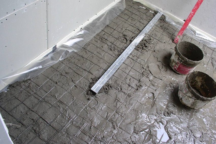 Beim Gießen unter den Estrich unmittelbar nach dem Verlegen der Heizelemente wird mit der Vorbereitung der Lösung fortgefahren.