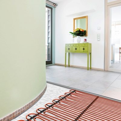 Die Verlegung von Fußbodenheizungen unter Fliesen, Feinsteinzeug oder Klinker hängt vom gewählten Bodensystem ab. Wie bereits erwähnt, sind die gebräuchlichsten Optionen für Fliesen das Kabelsystem und Heizmatten.