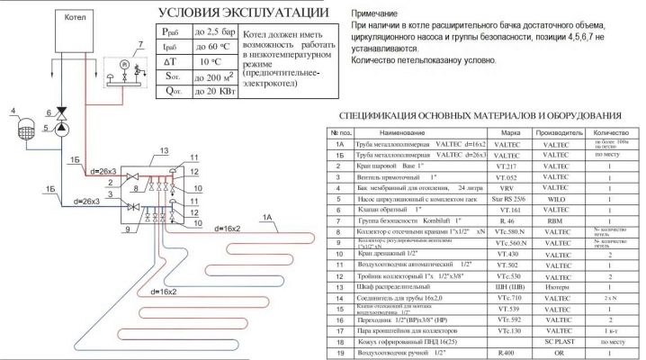 Der Wärmeträger in der ersten Ausführungsform ist Wasser, das durch die Rohre zirkuliert. Es kann von einem zentralisierten System oder einem separaten Steigrohr aus versorgt werden. In solchen Schemata gibt es notwendigerweise Pumpen, die eine Fluidbewegung bereitstellen. In kleinen Räumen kann auf den Einbau einer Pumpe verzichtet werden und die Zirkulation der Flüssigkeit erfolgt unter dem Einfluss der Schwerkraft.