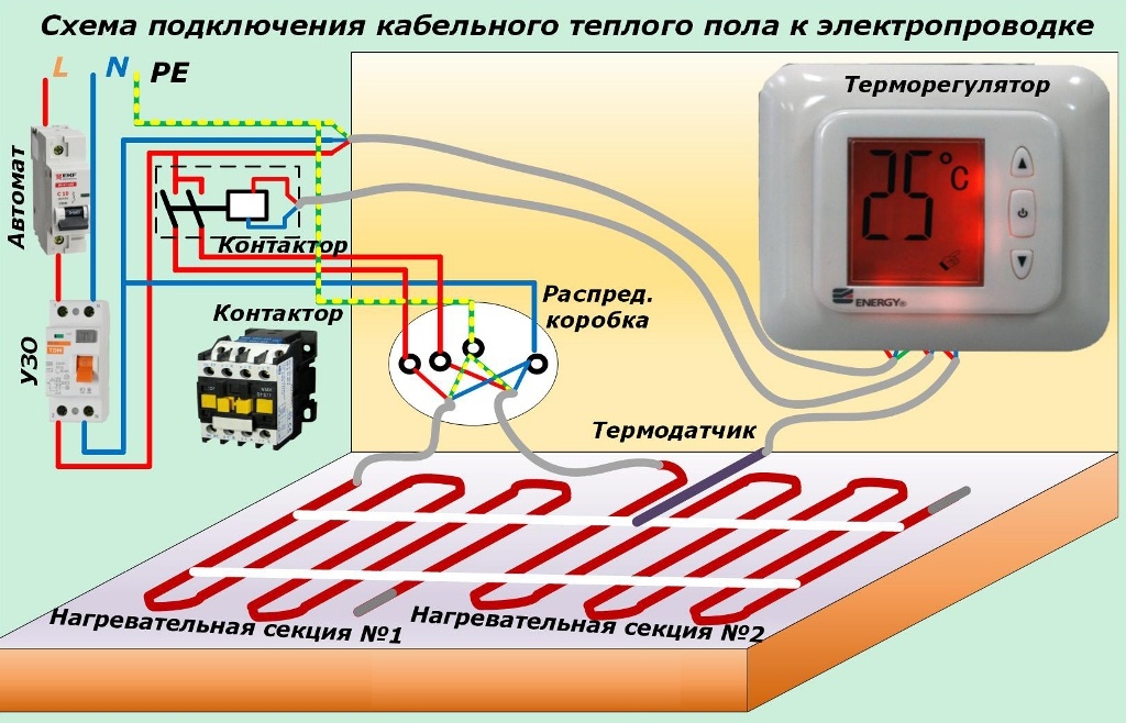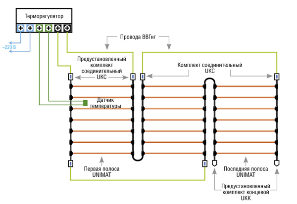 Schematische Grafiken sind in der Regel auf dem Körper des Thermosensors oder im Pass zu ihm dargestellt. Der elektrische Anschluss kann über eine Steckdose oder eine spezielle Schalttafel erfolgen. Bis heute sind die beliebtesten Geräte elektronische Thermostate. Ein separates automatisches Gerät, das über eine Schalttafel angeschlossen wird, liefert die Nennleistung für die Spannungsdifferenz. Die Grenze ist die maximale Spannung, die das Gerät benötigt. Dieser Wert sollte mit dem vom System angegebenen identisch sein.