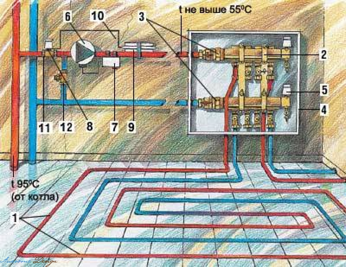 Mit einem Wassersystem können erhebliche Stromeinsparungen erzielt werden. Ein Wasserboden ist eine Art Heizelement, das aus in Beton eingepressten Rohren besteht. Auf ihnen zirkuliert die Flüssigkeit, die vom Heizkupfer erwärmt wird.In Mehrfamilienhäusern ist es möglich, das System ohne zusätzlichen Kessel zu installieren. Das Kühlmittel kommt von der Leitung.