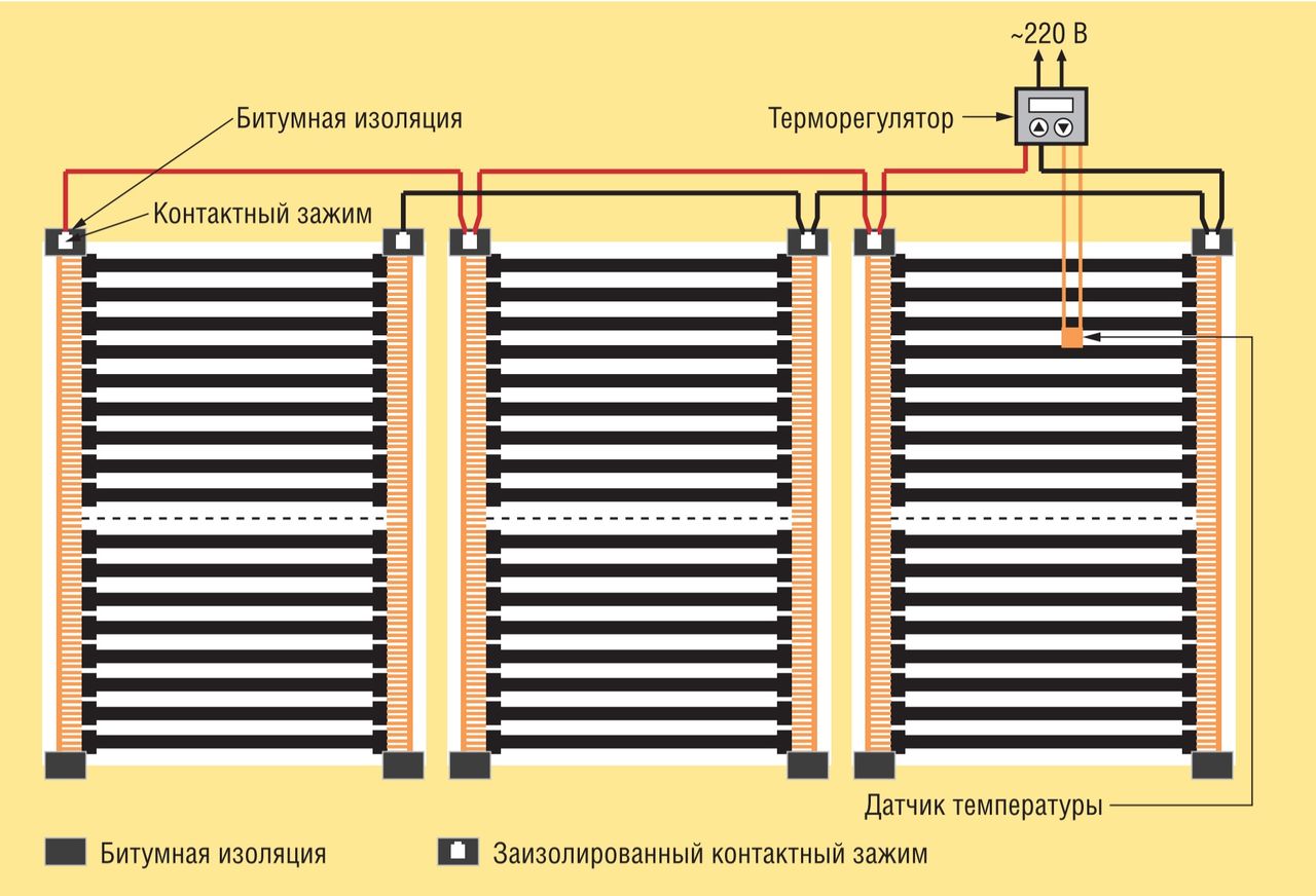 Das Gerät ist standardmäßig mit einem Infrarotfilm ausgestattet. Die Installation des Films sollte auf einer flachen Oberfläche mit einem Substrat-Isoliermaterial erfolgen, das Strahlung reflektiert. Kontaktanschlüsse für Verbindungsschaltungen befinden sich üblicherweise bereits auf dem Film selbst. Einige Arten von Filmen können durch spezielle Markierungen geschnitten werden.