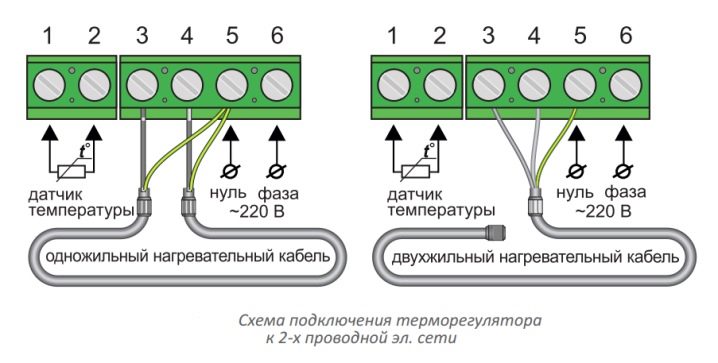 Was ist der Unterschied zwischen einem ein- oder zweiadrigen Kabel? Unterschiede nur in der Art der Installation. Einadriges Kabel beinhaltet die Rückkehr zum Temperatursensor. Bei einem starken Kabel wird der Stromkreis mit einer speziellen Spitze geschlossen. Plus die Wahl einer Zwei-Kern-Version in einer einfachen Installation und Installationsmöglichkeiten in Räumen, die sich durch die Komplexität des Layouts auszeichnen.