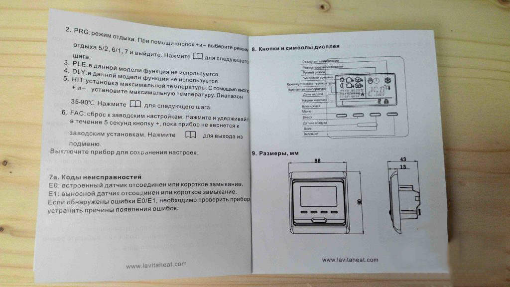 - Große Reihe von Funktionen. Thermostate programmierbare Art, zusätzlich zur Standardfunktionalität, haben zusätzliche Eigenschaften, um den Komfort des Verwendens einer Fußbodenheizung zu verbessern.