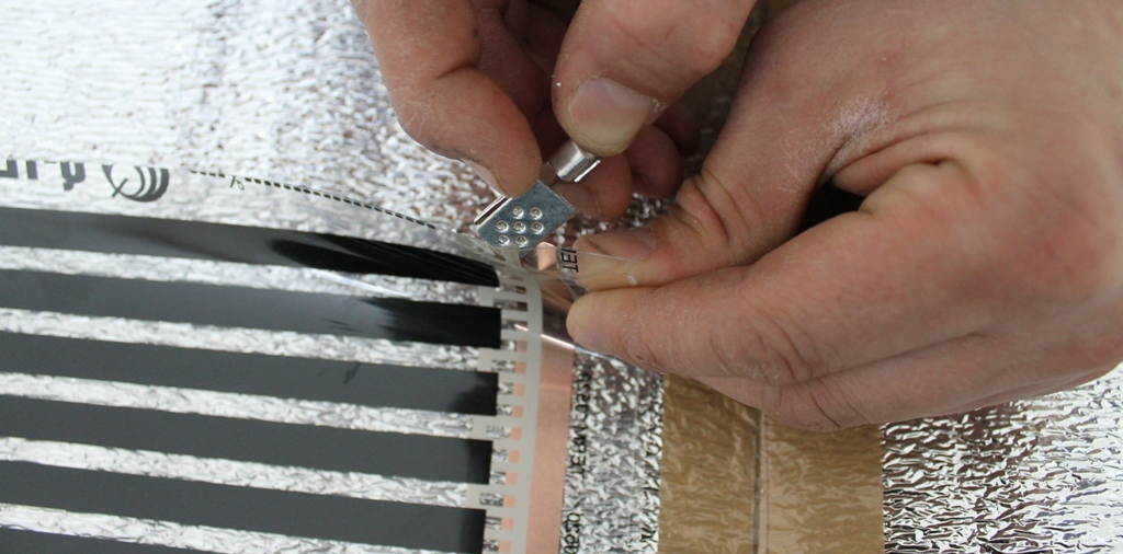 - Wenn Sie Infrarotfolie für Fußbodenheizung verwenden, ist der Sensor auf der Innenseite der Folie montiert.