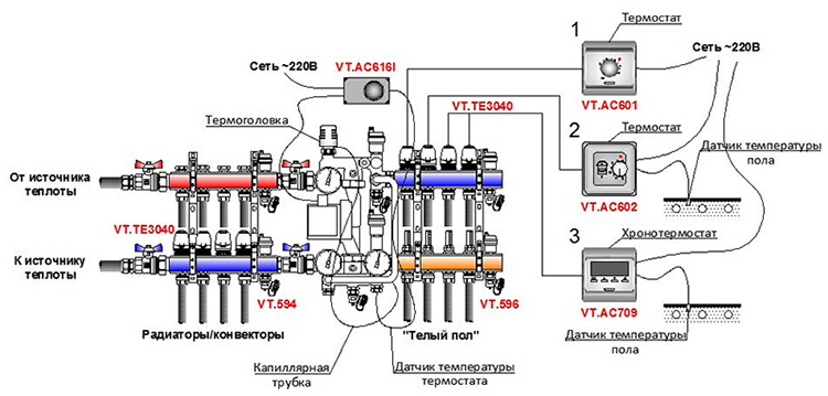 Wie für die Installation eines Thermostats für einen warmen Boden des Wassertyps ist es in den meisten Fällen überhaupt nicht notwendig. Verteildüsen werden aktiv für diese Art von Fußbodenheizung verwendet. Dies ist kein separates Element, sondern ein vollwertiges System, das den Betrieb der Konturen eines wasserbeheizten Bodens steuert. Um Geld zu sparen, möchten die Besitzer jedoch noch thermische Sensoren an ihren Systemen sehen.