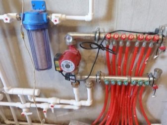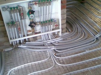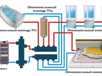 Bevor Sie die Fußbodenheizung und die Gasausrüstung trimmen, müssen Sie den Kollektor und die Fußbodenheizung selbst warnen. Ein Warmwasserboden kann auf eine der folgenden Arten mit einer Säule oder einer anderen Art von Gasausrüstung verbunden werden.
