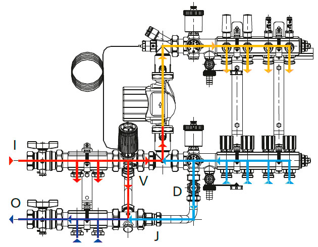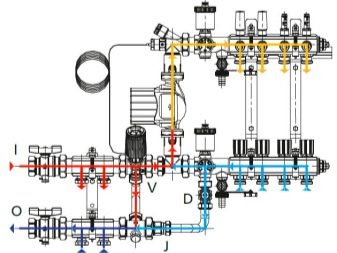 Die Mischpumpe wird helfen, den Wasserdurchfluss mit einer minimalen Temperatur zu organisieren, danach wird sie dem Fluss hinzugefügt.Dazu muss die Pumpe zwischen der Rohrleitung und dem Versorgungsverteiler und der dritte Auslass mit dem Rücklauf vor der Rückleitung installiert werden.