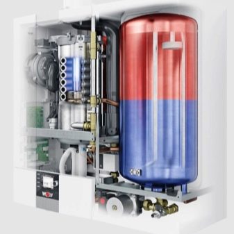 - Doppelschaltung. Diese Art von Kessel ist notwendig, um das Haus mit Wärme und heißem Wasser zu versorgen. Aber in solchen Einheiten können Sie mehrere Versionen von Wärmetauschern finden: