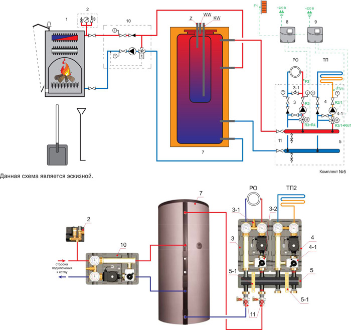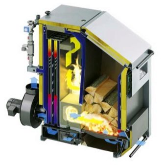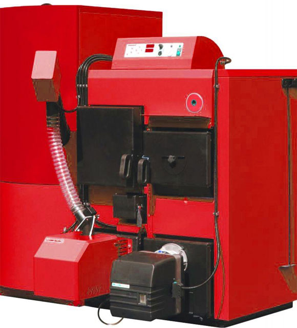 Geforderte Version der Kesselausrüstung für ein privates Haus, wo es Störungen in der Versorgung mit Kraftstoff gibt. Dieser Kesseltyp verfügt über zwei Feuerstellen, die es Ihnen ermöglichen, eine der Brennstoffarten zu verwenden, oder einen Universalofen, mit dem Sie verschiedene Heizungsarten verwenden können. Der Hauptnachteil einer solchen Installation sind ihre hohen Kosten.