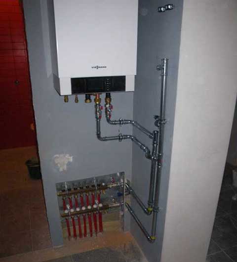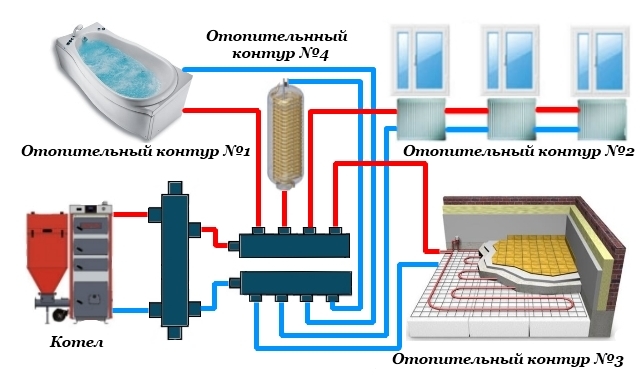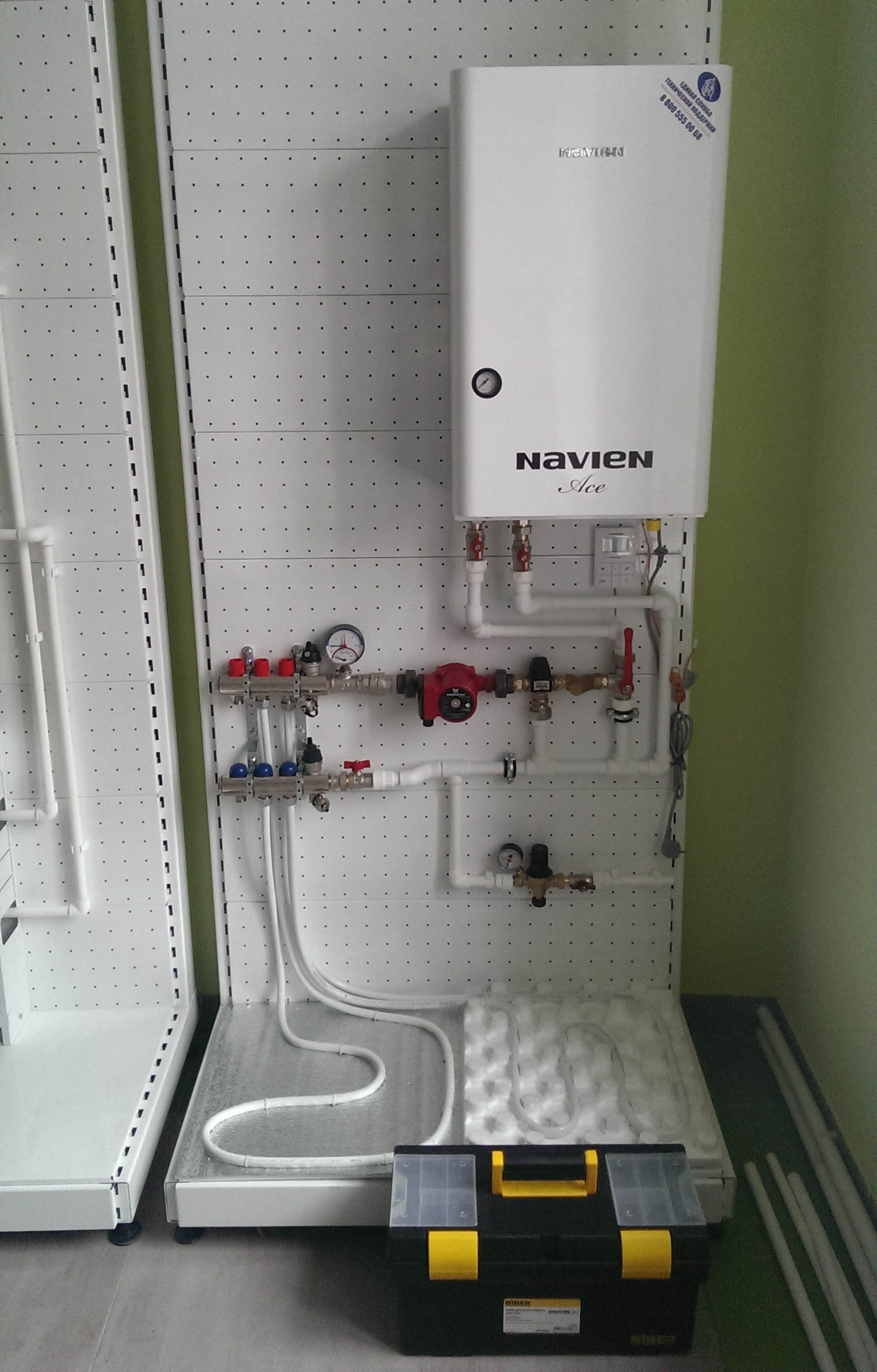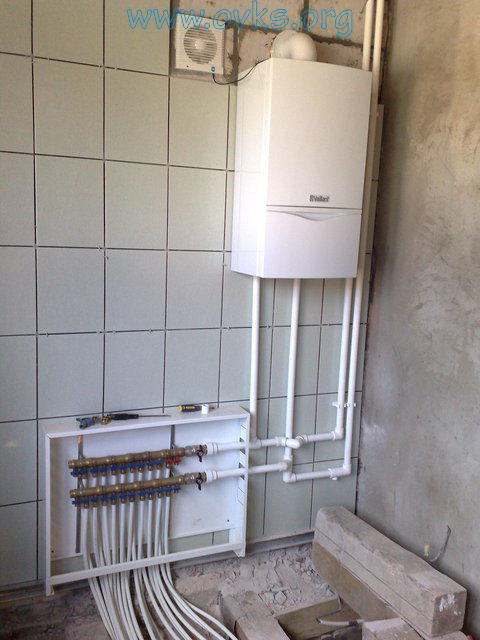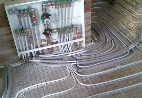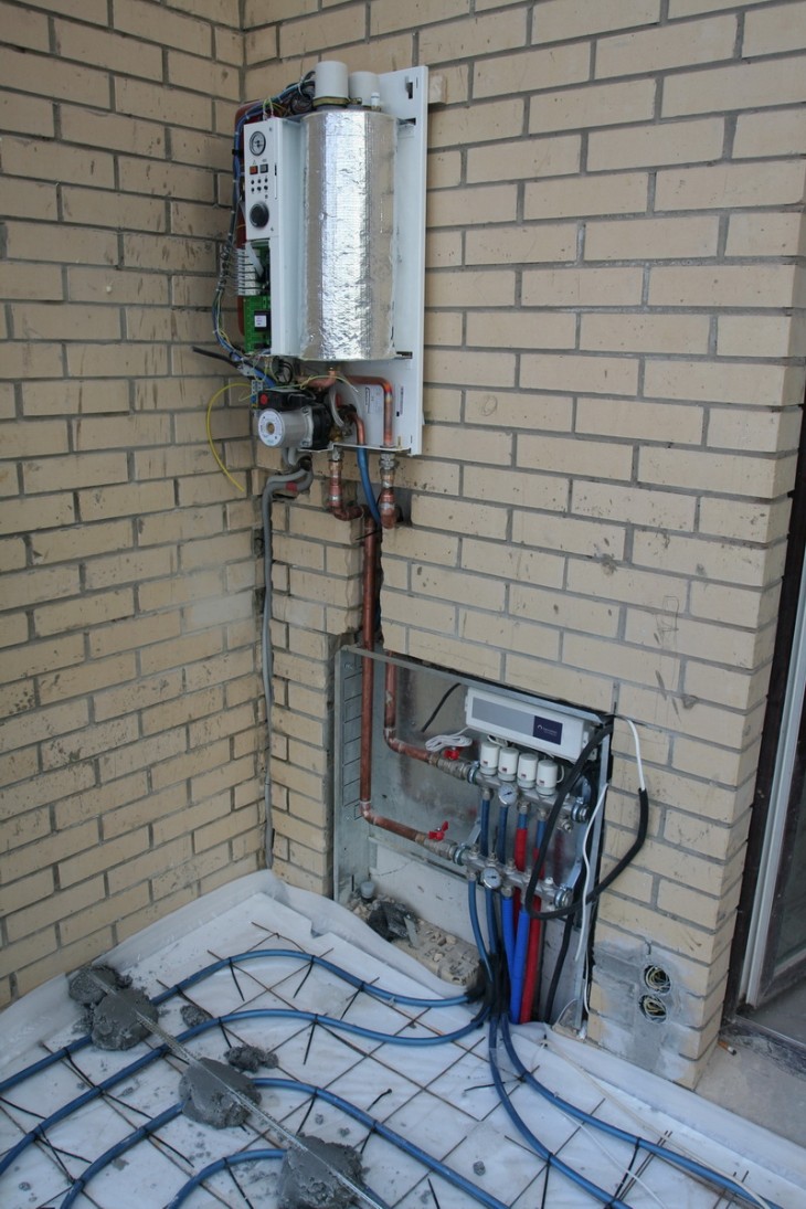 Gasausrüstung ist sowohl eine Quelle von heißem Wasser als auch eine Aufnahme von gekühltem Kühlmittel. Der erwärmte Wasserstrom, der die Gasausrüstung verlässt, zirkuliert durch das Fußbodenheizungssystem. Seine Temperatur nimmt allmählich ab und gibt Wärmeenergie an die Rohre ab.