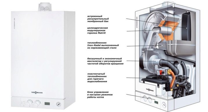 - Turbocharged. Das Gerät hat entweder eine oder zwei Turbinen, wodurch die Luft gezwungen wird und die Abfallprodukte entnommen werden. Dieses Gerät moduliert die Leistung des Brenners und passt die Intensität der Rotation der Lüfter an.