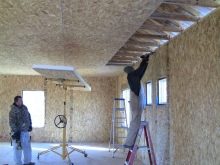 Wichtig ist, dass die Platte keine tragende Struktur ist und wenn sie irgendeiner Belastung ausgesetzt ist, schnell zusammenbricht. Daher sollte seine Installation so erfolgen, dass auch die eigene Last möglichst weit auf die Balkenelemente und den Träger einwirkt. Wenn diese Voraussetzung erfüllt ist, können Sie auch zweistöckige Garagen sicher bauen, wobei dem Bauvolumen keine Grenzen gesetzt sind und deren Höhe nicht ist.