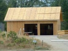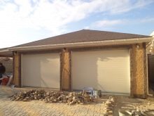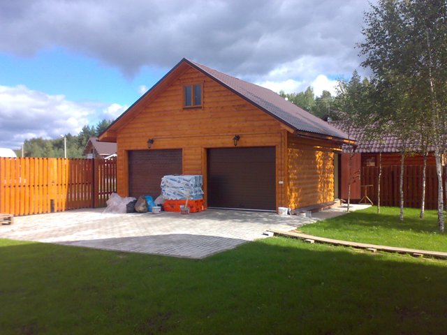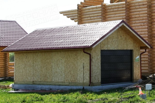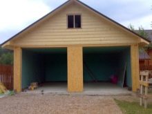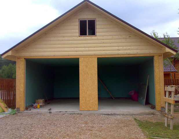 Leichtes Material, das durch Pressen erhalten wird, wird so montiert, dass die Last von den Sparren und Böden auf die inneren Säulen fällt. Diese Lösung ermöglicht es, das Innenvolumen des Gebäudes minimal zu füllen, wodurch die Außenwände und Stützen der Stützen weitgehend von Druck befreit werden. Wenn eine Garage, die allen anderen Eigenschaften ähnlich ist, aus Ziegeln gebaut wird, ist eine zusätzliche Innenwand erforderlich.