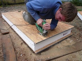 Es ist zu beachten, dass es beim Bau einer Garage eine einfachere Möglichkeit gibt, CIP-Panels zu installieren. Es erfordert keinen Rahmen, daher ist es nur in Gebieten einsetzbar, in denen Erdbeben, starke Winde und Stürme sowie starker Schneefall ausgeschlossen sind. Die Bodenplatte wird dort platziert, wo sich die Umreifungsbalken kreuzen, wird nivelliert und mit einem ordentlichen Hammerschlag auf das Holz gefahren.