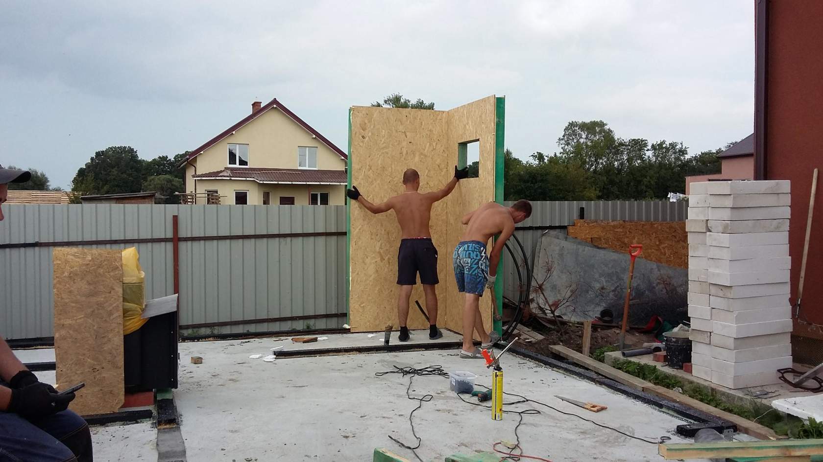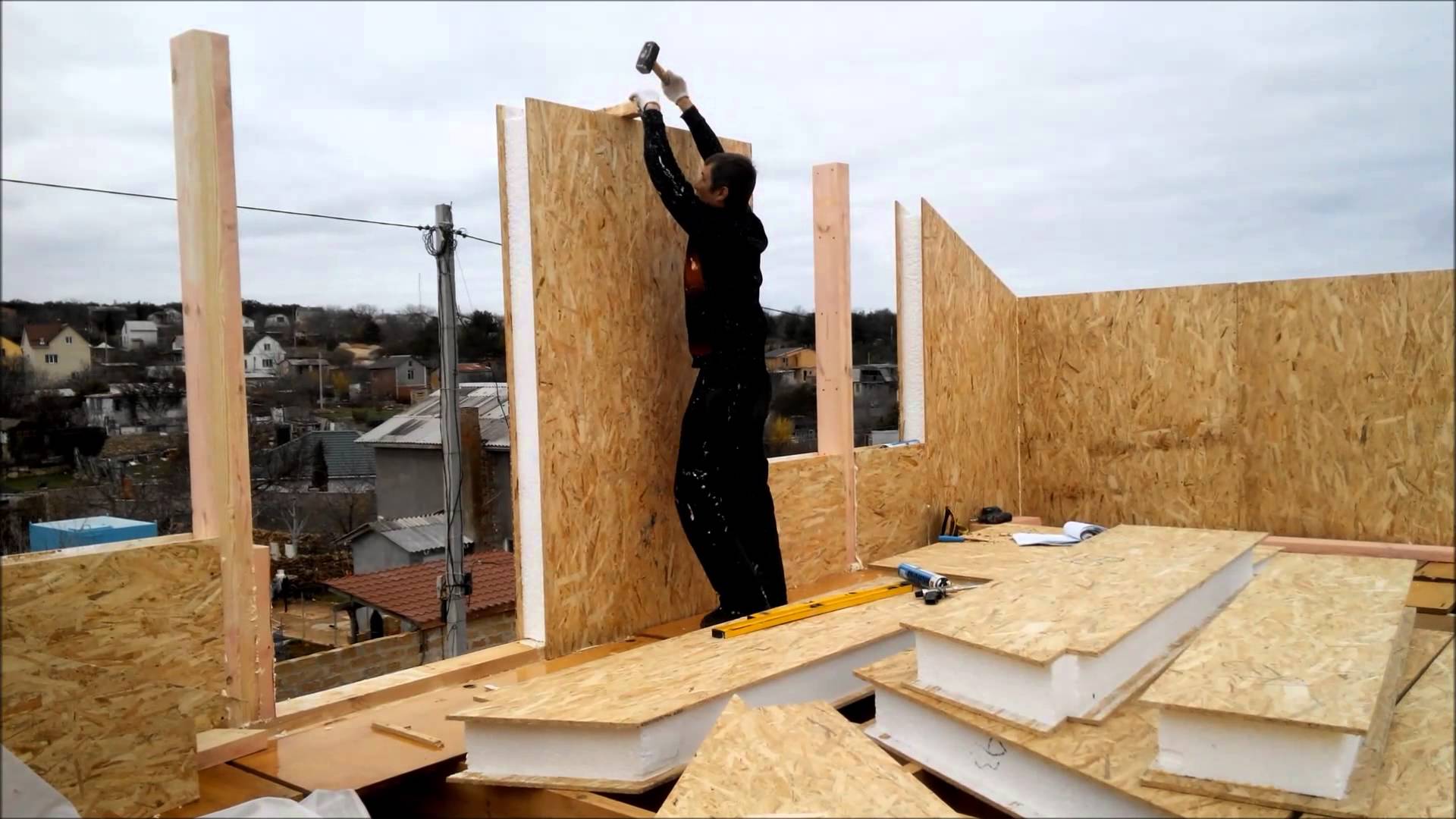Die Wände müssen installiert werden und überprüfen ihre Geometrie ständig mit Lotlinien und präzisen Gebäudeebenen. Es ist unmöglich, das CIP-Panel zu schneiden, daher ist es notwendig, den Verbrauch so genau wie möglich zu berechnen.