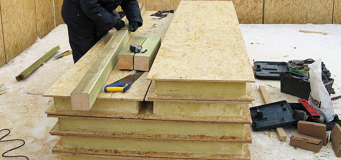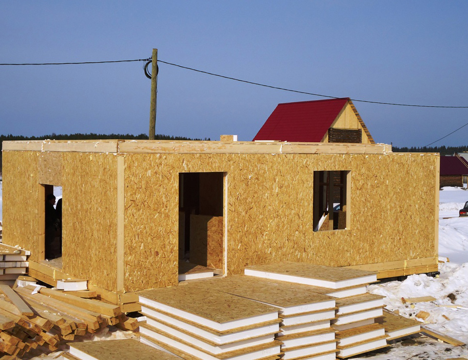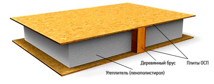 CIP-Paneele sind konstruktiv isoliert, auf denen die sogenannten orientierten Spanplatten aufliegen. Dieses Material: