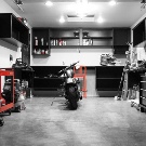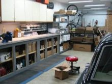 Lampen, die in der Garage zentriert sind, müssen hoch genug sein, um den Arbeitsbereich abzudecken.