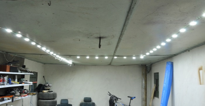 - LED-Lampen und LED-Streifen Sie sind eine wirtschaftliche und praktische Möglichkeit, um Beleuchtung zu schaffen. Für Garagen ist dies die beste Lösung, da sich die betreffenden Geräte durch eine lange Betriebsdauer auszeichnen. In dieser Situation, mit einem geringen Stromverbrauch, können Sie eine qualitativ hochwertige Beleuchtung organisieren. Zu den Nachteilen zählen die hohen Kosten dieser Lampen.