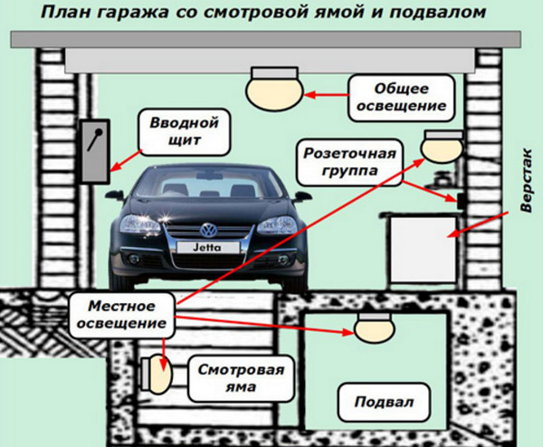 Die Beleuchtung in einer Garage sollte mit der Entwicklung des richtigen Schemas beginnen, wobei folgende Punkte zu beachten sind: