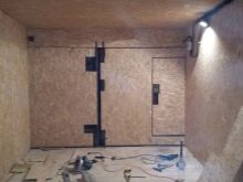 Die nächste Stufe ist die Installation der Dampfsperre. Dies kann eine Folie oder gewöhnliche Kunststofffolie sein. Dann installieren Sie die Trockenbauwand oder Wandverkleidungen. Das erste Material wird mit Schrauben befestigt, und das Auskleiden des Spike in der Nut.