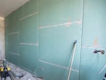Das Innenausbau des Garagenraums kann mit Hilfe von Trockenbau erfolgen. Um es zu befestigen, können Sie einen speziellen Kleber verwenden. Wenn die Oberflächen Unregelmäßigkeiten aufweisen oder der Raum erwärmt werden muss, können Sie ihn mit einem Metallrahmen befestigen.Diese Option benötigt jedoch etwas Platz und der Raum wird kleiner. Für die Garage ist es besser, feuerbeständige und feuchtigkeitsbeständige Trockenbau zu nehmen, mit einer grau-grünen Farbe und roter Markierung.