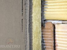 Dann werden die Blätter eines bestimmten Materials separat daran befestigt. Zwischen den Lamellen des Gitters im Freiraum passen Dämmungen. Sie können Mineralwolle oder Schaum verwenden. Jedoch Isolationsstärke sollte nicht die Dicke der Schienen überschreiten.