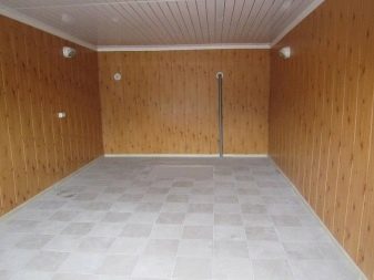 Vergessen Sie nicht die interne Ausrüstung der Garage.Dies beinhaltet die Anordnung einer Aussichtsgrube, die die Wände, den Boden und die Decke bedeckt und den Raum in der Nähe des Eingangs schmückt.