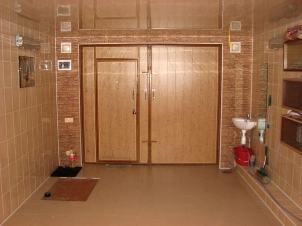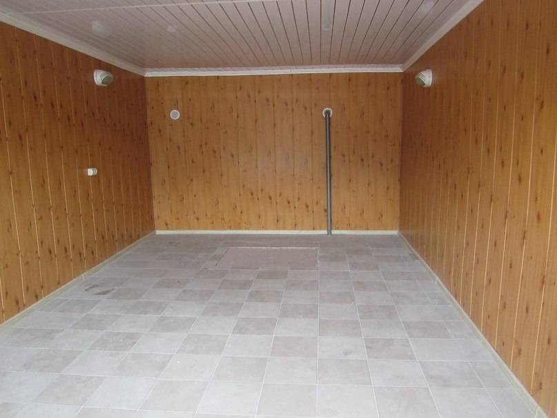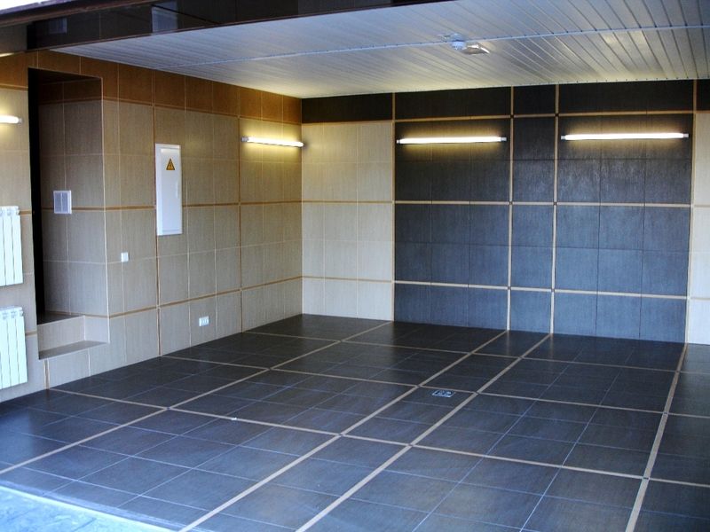 Für die Fertigstellung der Garage können Sie Keramikfliesen verwenden. Es ist perfekt für Wände und Decken, sowie mit Fliesen auf dem Boden kombiniert. Diese Beschichtung ist sehr langlebig und zuverlässig und sieht auch sehr gut aus.