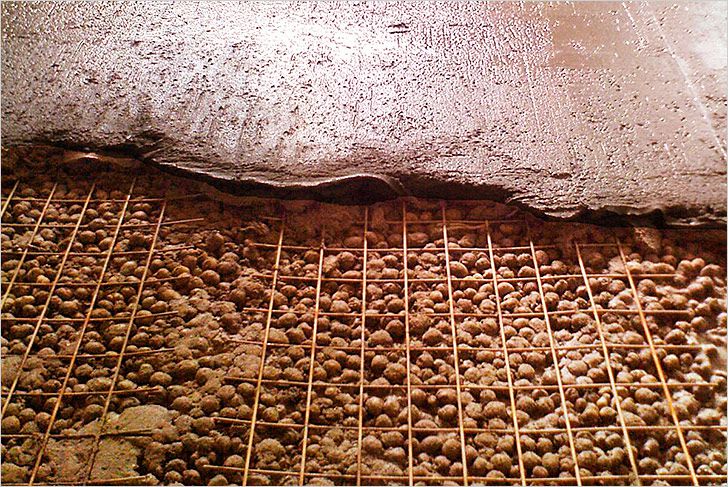 Am häufigsten wird für solche Räumlichkeiten Beton verwendet. Schließlich hält er sich an Wänden aus Ziegelstein oder Porenbeton besser als andere. Es hat große Stärke, hat keine Angst vor Feuer, wenn nötig, auf der Betonoberfläche, können Sie leicht Reparaturarbeiten durchführen.