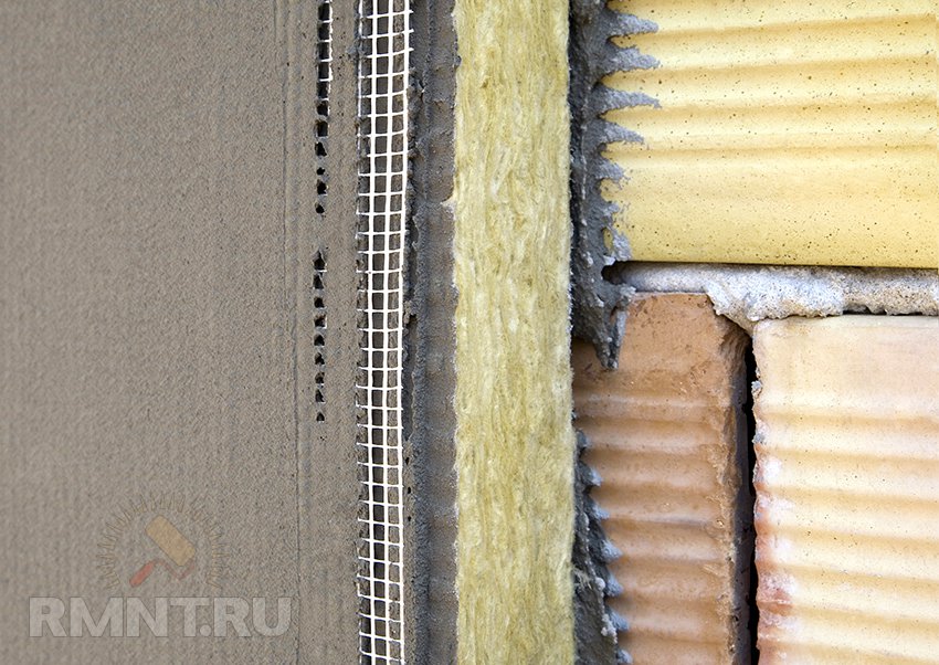 Bei dieser Art von Oberflächenbehandlung müssen Sie auch die Wandisolierung durchführen, in diesem Fall wird dies als eine feuchte Fassade bezeichnet. Dazu wird die Dämmung an die Wände geklebt und mit Polymerzementmörtel ein Armierungsgewebe aufgelegt. Und erst dann dekorativen oder Fassadenputz fertig stellen. Der letzte Schritt ist das Färben.