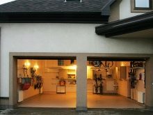 Berücksichtigen Sie beim Entwurf einer Doppelgarage die Stärke. Schließlich wird die Struktur nicht nur zwei Autos halten. Es wird immer noch Platz für die Lagerung von Ersatzteilen, Werkzeugen, Geräten und anderen Dingen geben müssen. Es ist notwendig, im Voraus zu überlegen, ob es mit einer Krananlage ausgestattet wird oder ob es verschiedene Zylinder, brennbare und explosive Gase gibt.