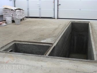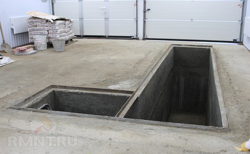 Stellen Sie sicher, in der Garage sollte eine Aussichtsgrube mit stationären Lampen sein. Standardgrubengröße - 0,9x4 Meter. Eine solche Grubengröße ermöglicht eine bequeme und sichere Autoreparatur. Es sollte beachtet werden, dass es in der Garage für zwei Autos besser ist, die Sichtgrube relativ zum Tor zu verschieben. Sie können eine Garage machen, in der der Schacht im Keller separat hergestellt wird, so dass es bequemer ist, Benzin, Reifen und so weiter zu lagern.