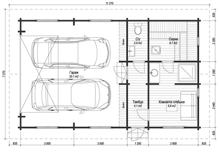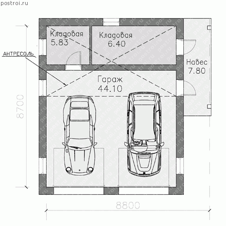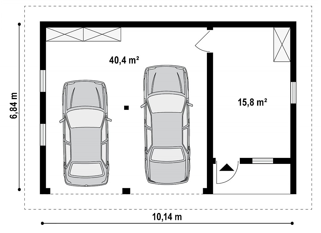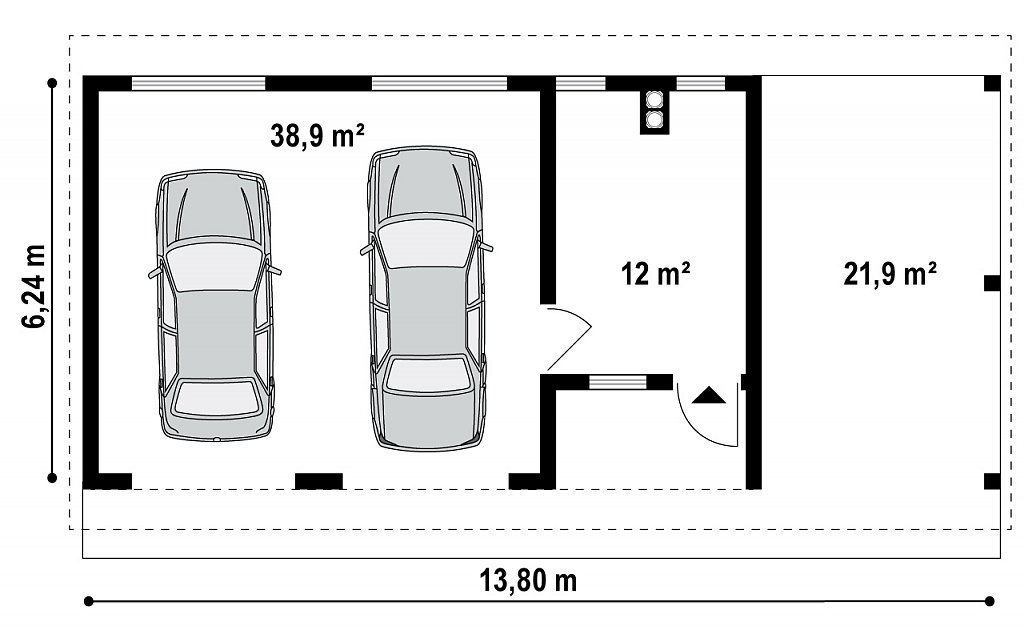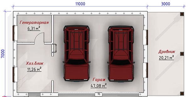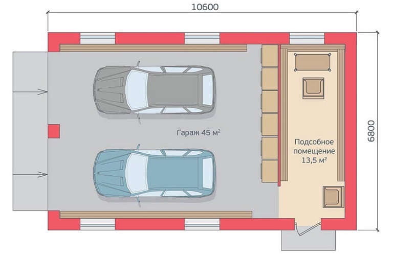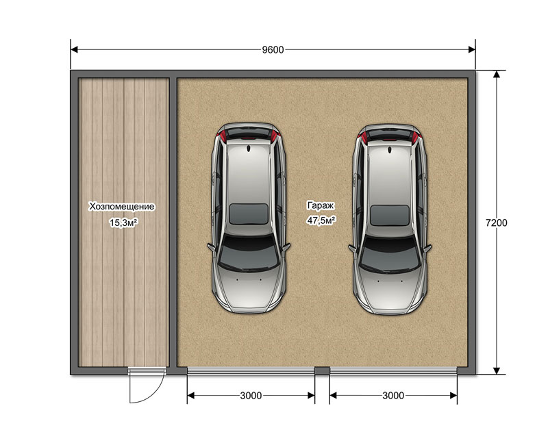 Bei der Wahl der Mindestgröße des Gebäudes für 2 Autos ist zu beachten, dass der Abstand zu den Seitenflächen mindestens 50 Zentimeter betragen sollte.
