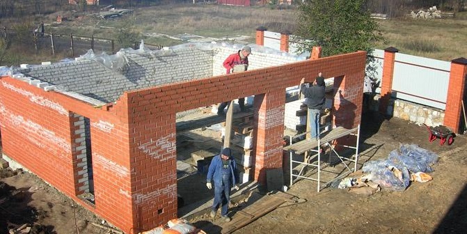Die Dicke der gemauerten Wände wird in der Regel in einem halben Ziegelstein gewählt. Stahlstäbe werden verwendet, um die Mauer an jeder vierten oder fünften Ziegelreihe zu verstärken. Sie sind in horizontalen Nähten verlegt. Vertikale Verstärkung wird verwendet, um Ecken mit Vorsprüngen zu verstärken.