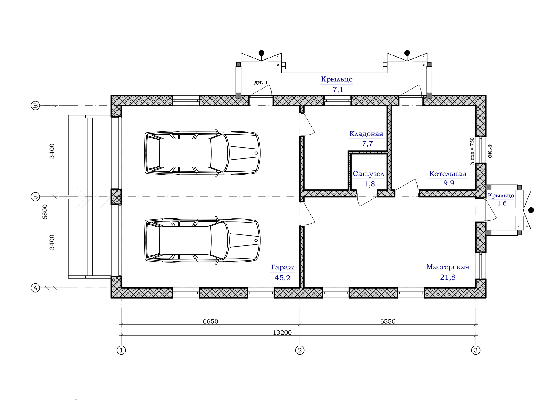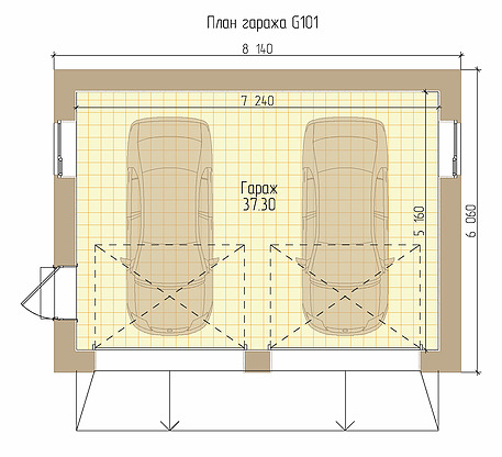 Bei der Gestaltung einer Garage für zwei Orte sollten Sie sich zunächst die Standards anschauen. Ihrer Meinung nach sollten die Abmessungen des Parkplatzes für ein Auto wie folgt sein: