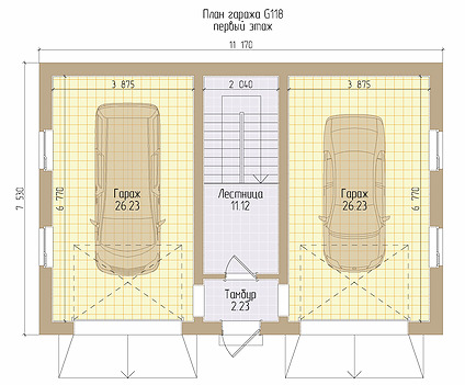 In der Garage für zwei Autos Eintrittslänge sollte ca. 5,5 Meter betragen. Zum Beispiel ist die durchschnittliche Limousine 1,7 Meter breit und 4,5 Meter lang.So wird die Breite des Gebäudes für zwei Autos mindestens 3,4 Meter betragen. Bei der Berechnung ist zu überlegen, wie der Raum um das Auto herum angeordnet wird, damit sich Fahrgäste und Fahrer bequem setzen oder verlassen können.