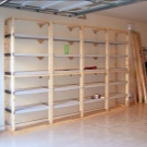 Wenn die Garagenregale aus Holz sind, können sie unnötige Dinge aus dem Haus legen, ein kleines Inventar, aber nichts zu schwer. Der Vorteil dieses Typs ist, dass Sie es selbst ohne große Schwierigkeiten tun können.
