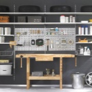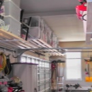 Wenn in der Garage sehr wenig Platz ist und es viel Platz braucht, aber ein geringes Gewicht hat, können Sie an der Decke Nischen bauen, die mit Ketten befestigt werden können, sie können bequem in dafür ausgewählte Container gefahren werden. Wenn Sie einen Platz für Schlüssel vorbereiten müssen, dann sind die perforierten Paneele dafür am besten geeignet. Die Haken werden in die Löcher eingeführt, in denen die Schlüssel angebracht sind.