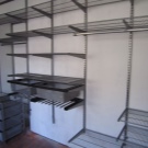 Wenn Sie Staub und Schmutz auf den Regalen minimieren wollen, müssen Sie anstelle von Holz und ähnlichen Materialien ein Metallgitter verwenden, durch das Schmutz auf den Boden fällt, von wo es leichter zu entfernen ist. Es gibt Ausrüstung, die viel Platz in der Rückenlage einnimmt, weil man dafür vertikale Regale herstellen kann, die aus dem Schrank rutschen und spezielle Gegenstände auf spezielle Halterungen legen.