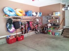 Damit jedes Objekt in der Garage seinen Platz hat und gleichzeitig der Raum nicht überladen und überladen wirkt, können Sie einige interessante Techniken anwenden. Wenn Sie Gartengeräte in der Garage lagern müssen, können Sie ein Holzregal mit einer Aussparung für den Halter erstellen, mit dem Sie alles sicher an einem Ort platzieren können.