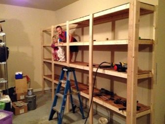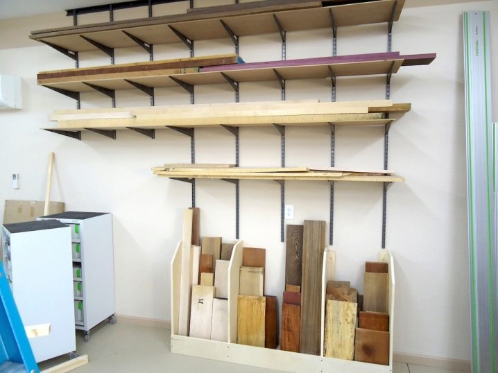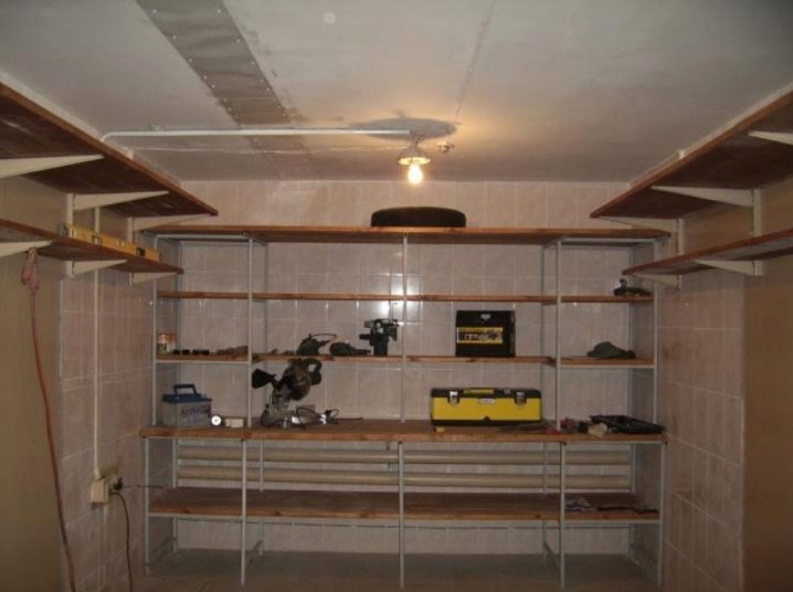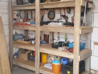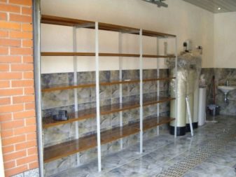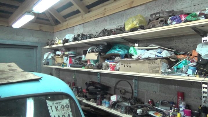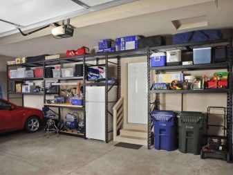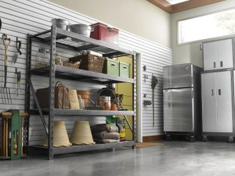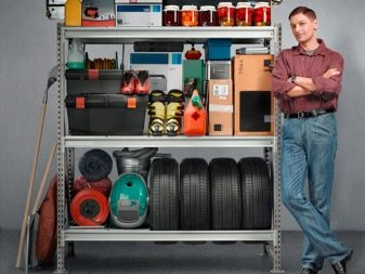 Es ist wichtig, in der Garage und in den montierten Regalen zu verwenden, um den ganzen Überschuss vom Boden zu entfernen und bequem in einer geeigneten Höhe zu platzieren. Solche Regale können aus Metall, Holz und kombiniert sein.
