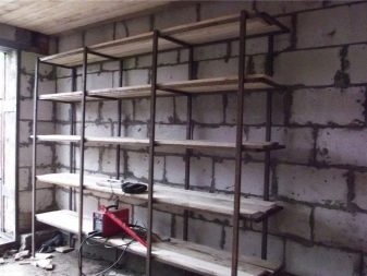 Regalböden aus Metall sind aus verschiedenen Materialien gefertigt, die Metallecke, das Profilrohr und die Kombination beider Optionen sind am besten für den Rahmen geeignet. Regale können aus dünnem Metall sein, aber es ist am besten, Holz und Spanplatten zu verwenden. Für Holzregale wird ein 50 bis 50 mm langer Stab für den Boden und für Fußbodenbretter, Sperrholz, Spanplatten oder OSB verwendet.