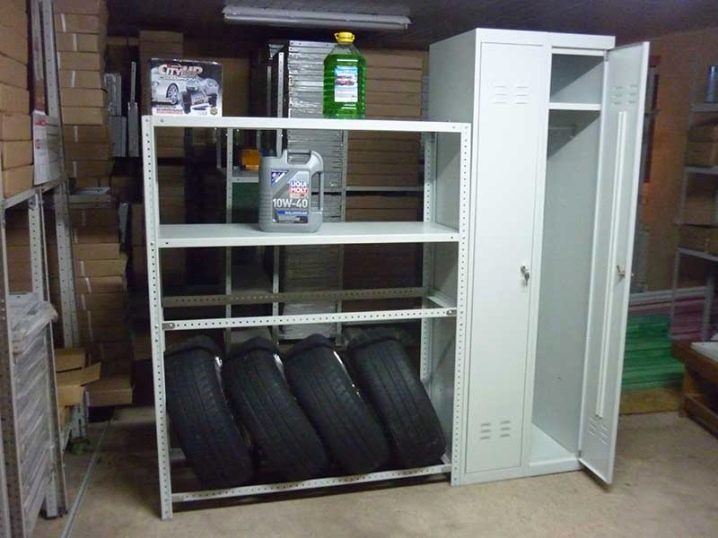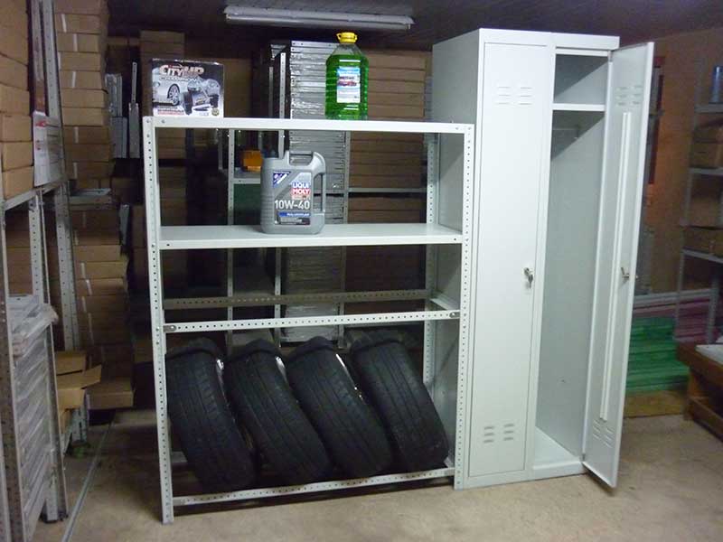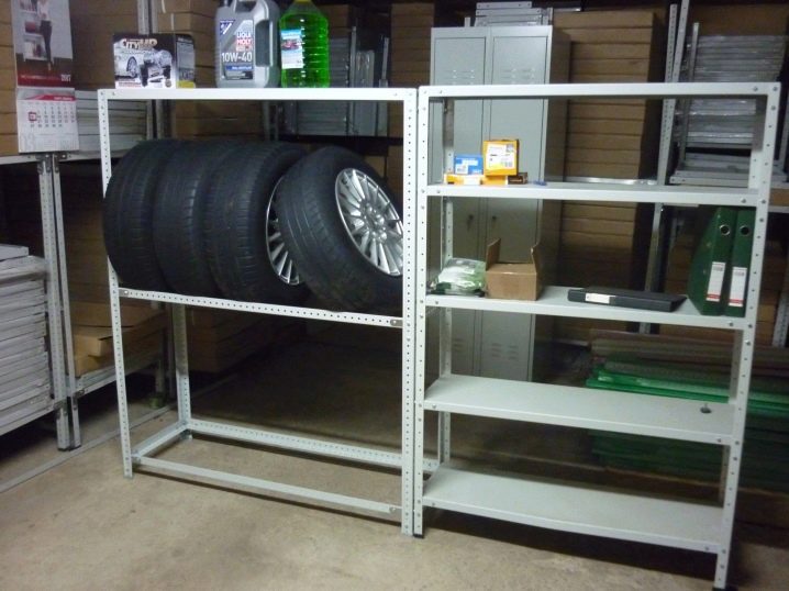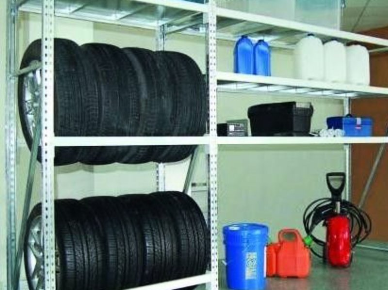 Wenn das Rack für die Lagerung von Reifen ausgerüstet ist, sollte es mehrere Abteilungen haben, Seite für kleine Dinge, mindestens 70 cm lang und 50 cm breit, und die Hauptstelle, wo die Reifen angeordnet werden, kann eine Länge von Meter bis 1,30 cm haben In diesem Fall wird die gesamte Struktur 2 Meter hoch und mehr als 2,5 breit sein. Diese Art von Regalen besteht am besten aus Metall.