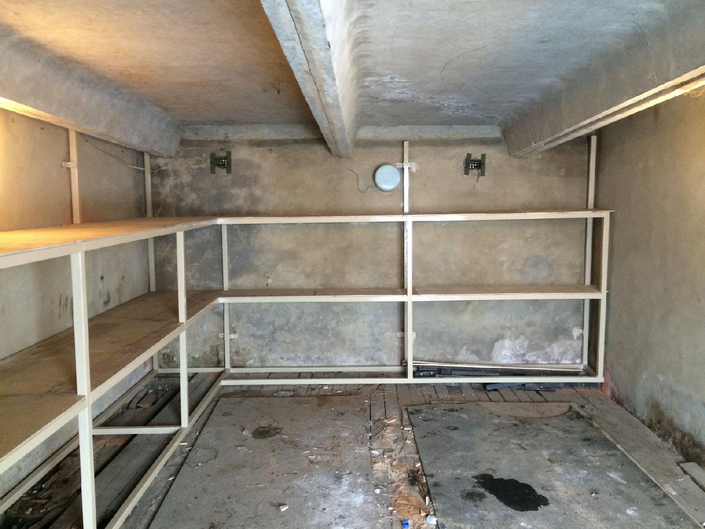 In hohem Grade angehobenes letztes Regal vom Fußboden, gibt Zugang zu der hochwertigen Reinigung des Raumes, die die Garage noch bequemer bildet.